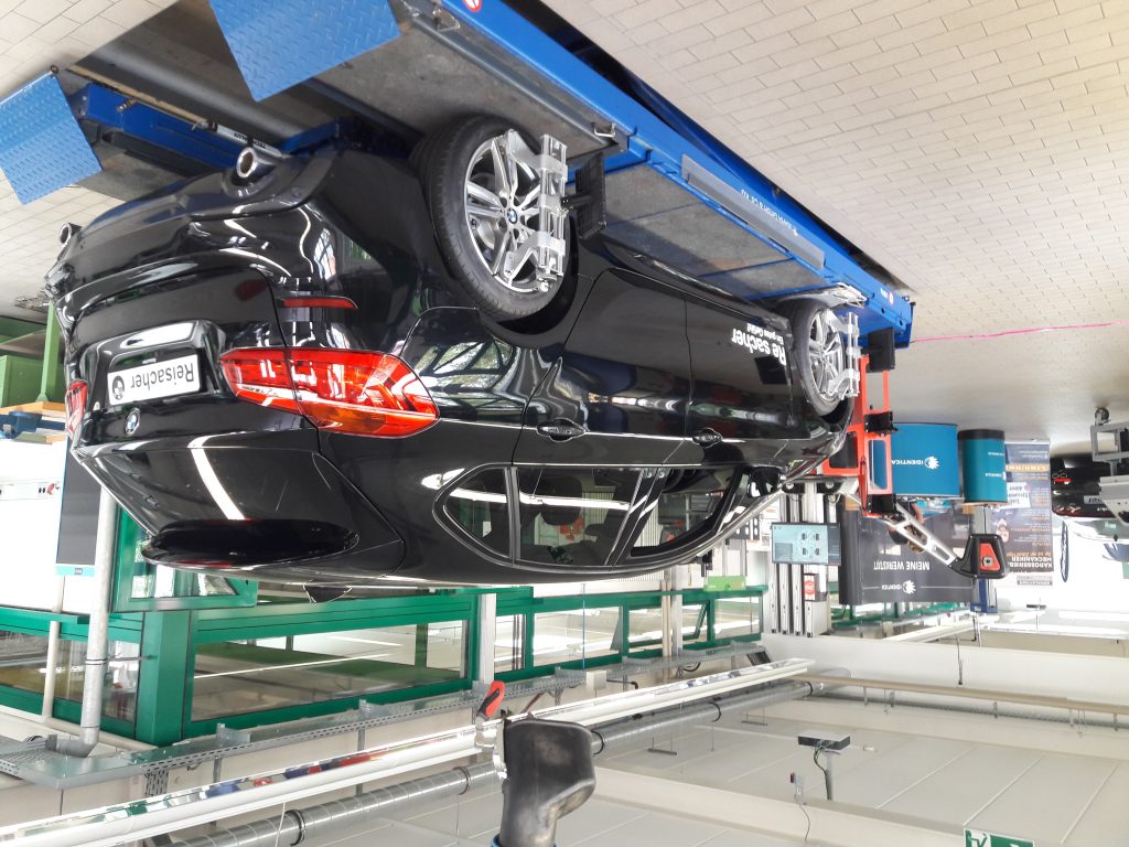 Dazu haben wir verschiedene Station vorbereitet. Dazu zählen eine Lichterwand, Motorenprüfstände, Reifenmontage und Wuchtung, sowie die Achsvermessung.